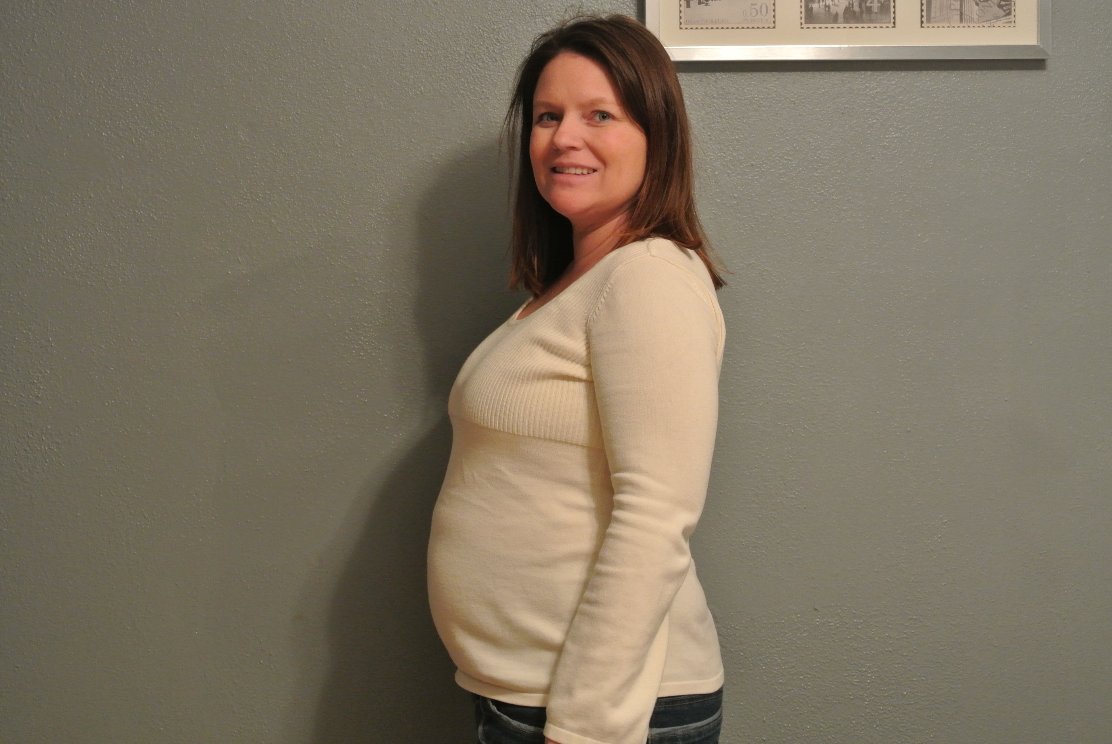 I’m sure my boobs are bigger this time around, they barely fit in my sweater! But other than that, I think the belly looks pretty much the same. I’m quickly finding out that the second time around doesn’t consume your life like the first time does. Sure I think about it and the baby but documenting it like I did before and remembering not to eat a sandwich from Jimmy John’s* isn’t on the forefront of my mind.