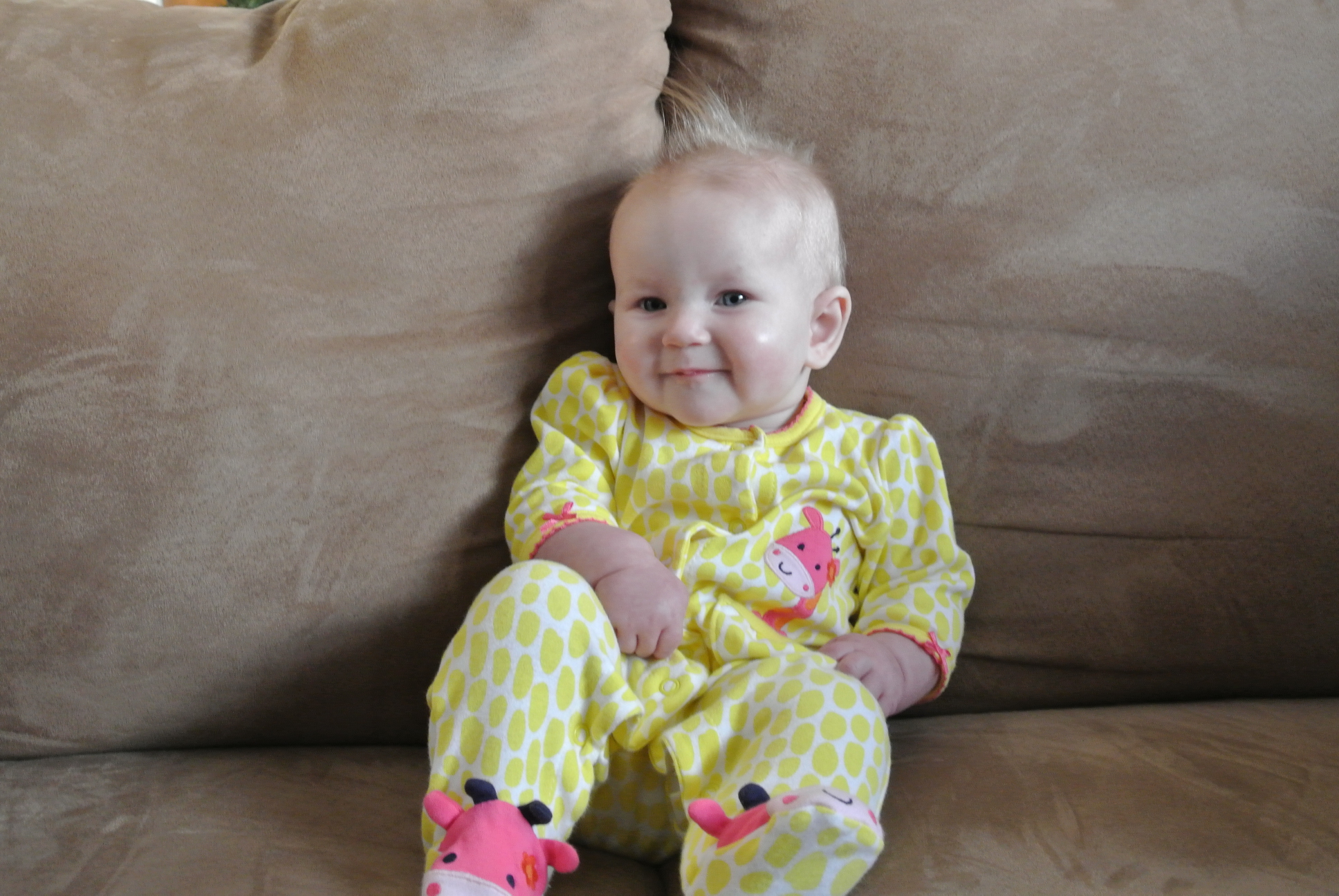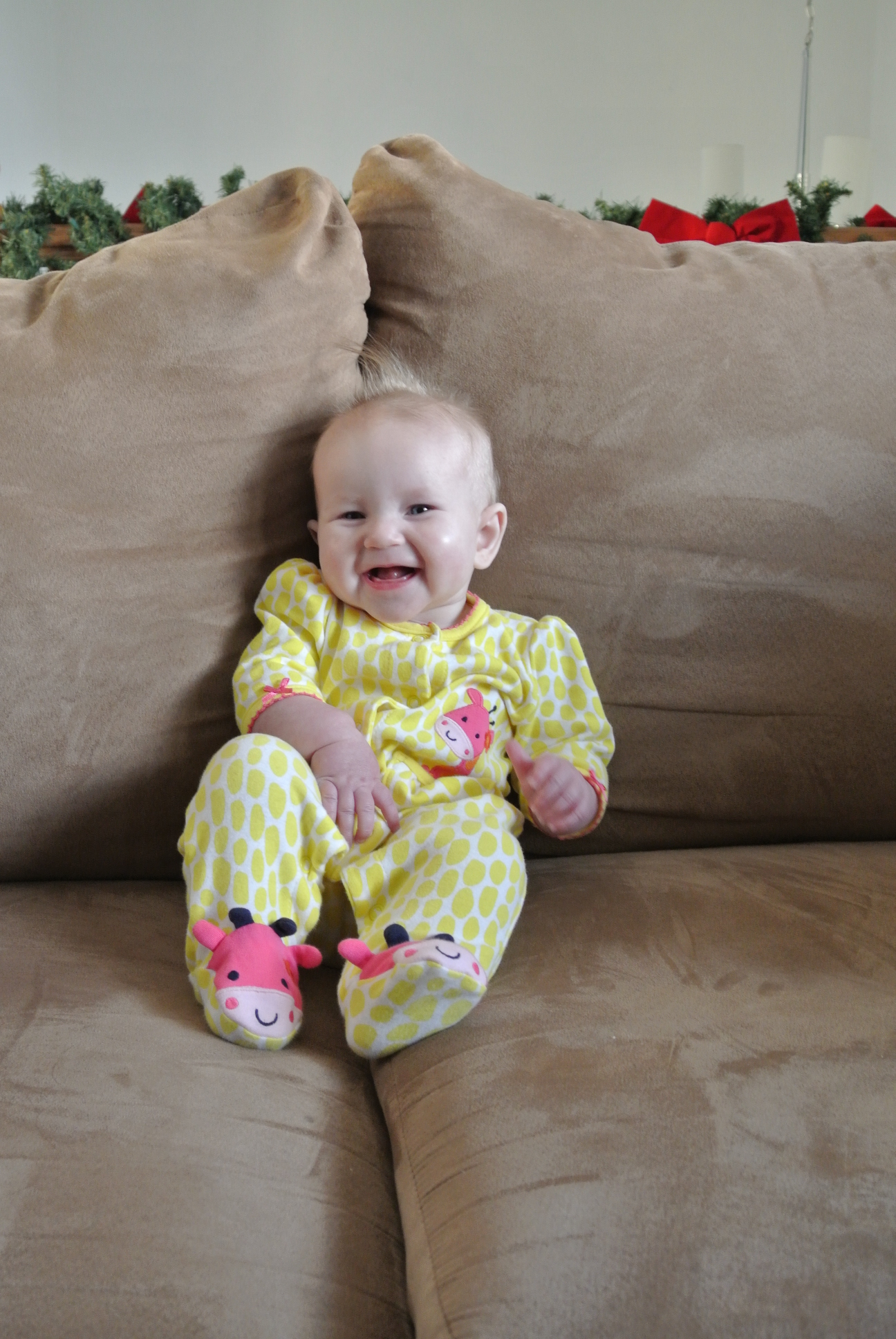 7 months has been fun. You tried mashed potatoes at Thanksgiving while your brother laid on the couch, sick. You started lip smacking, pop, pop, pop. It’s really cute. You eat at least one meal a day. Dad will give you either rice/oatmeal cereal and/or carrots.