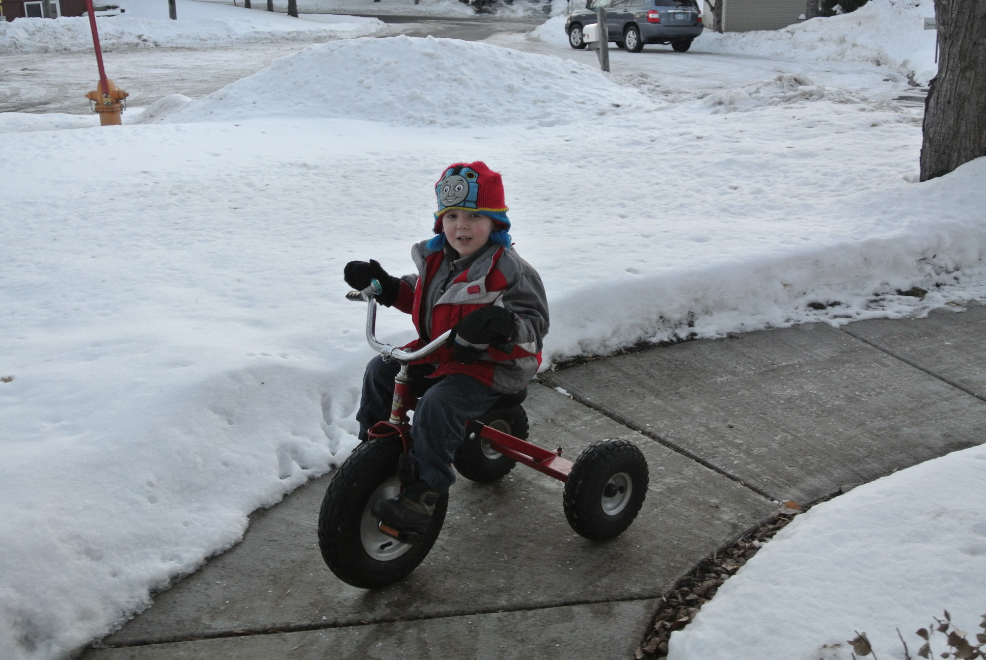 Not letting sub-zero temps stop some from playing outside, Jules wanted to ride his trike with his new bell. (What do Minnesota kids do when they get new bikes for Christmas? Does that even happen here?)