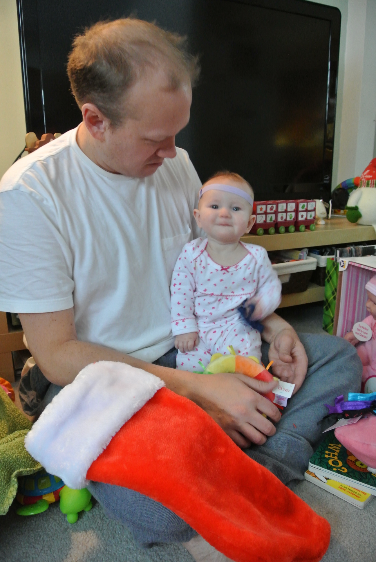 Christmas was fun. Jules helped you open a few gifts. You got a bunch of hair bows, a baby doll, soft blocks, clothes and some other small baby toys. It’s actually good you got your own toys because when I pulled out Jules’ old baby toys he immediately started playing with them.